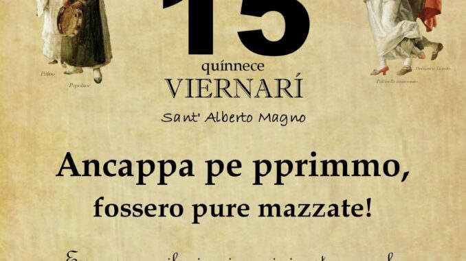 ‘O PRUVERBIO D’ ‘O JUORNO. Venerdì 15 novembre 2024 15/11/2024 binews.it EVIDENZA, Il Proverbio del Giorno, Uncategorized 0 di Gianni Polverino Ancappa pe pprimmo, fossero pure mazzate! Essere sempre il primo in ogni circostanza anche se a volte può non convenire.