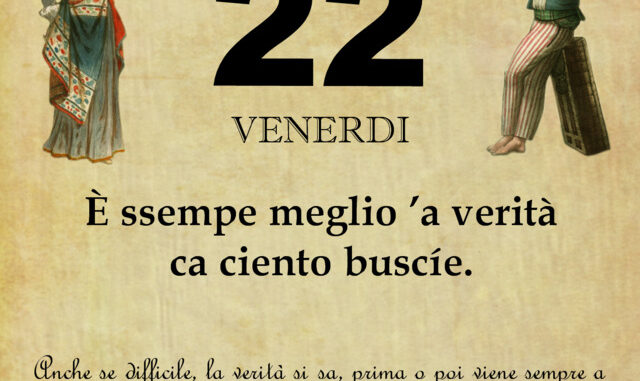 ‘O PRUVERBIO D’ ‘O JUORNO . Venerdì 22 maggio 2020 22/05/2020 binews.it EVIDENZA, Il Proverbio del Giorno, Uncategorized 0 di Gianni Polverino È ssempe meglio ’a verità ca ciento buscíe. Anche se difficile, la verità si sa, prima o poi viene sempre a galla, ma c’è chi ritiene che sia meglio non dirla.