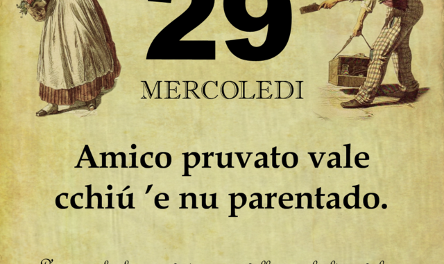 ‘O PRUVERBIO D’ ‘O JUORNO. Mercoledì 29 novembre 2017 29/11/2017 binews.it Il Proverbio del Giorno, Uncategorized 0 Amico pruvato vale cchiú ’e nu parentado. L’amico che ha già dato prova della sua lealtà e del suo affetto vale certamente più di tutti i parenti messi assieme.