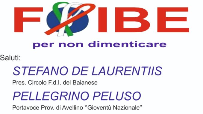 Organizzato dal Circolo mandamentale dei Fratelli d’Italia un convegno sulle Foibe che si terrà presso la sala consiliare del comune di  Sirignano domani 9 febbraio alle ore 11.00.