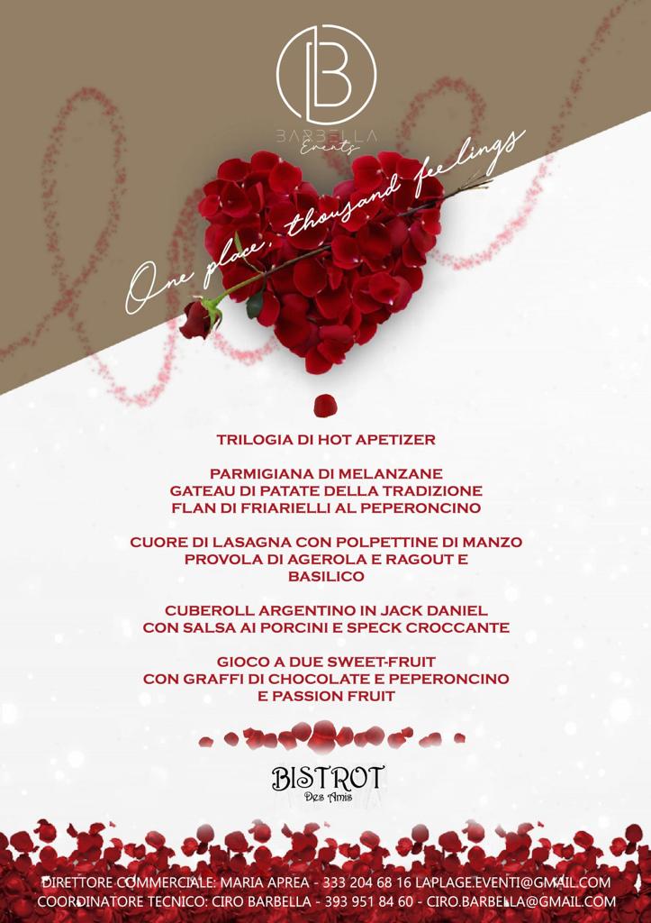 In occasione della festa degli innamorati il Bistrot Des Amis (Sirignano) è pronto a stupirti con un menù delizioso e creativo pensato appositamente per festeggiare San Valentino con la tua dolce metà. La “Trilogia di Hot Apetizer” targata Bistrot comprende un mix di sapori nostrani con profumi forti e piccanti che si adattano perfettamente all’evento più romantico dell’anno. Il percorso culinario, ricco e variegato,  comprende: