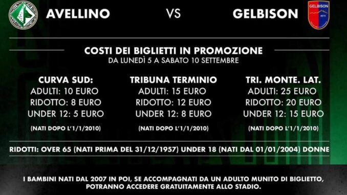 È gia attiva da questa mattina la prevendita in vista della seconda giornata del campionato di Serie C, Girone C, tra Avellino e Gelbison prevista per domenica 11 settembre 2022 alle ore 17,30 presso lo stadio Partenio – Lombardi di Avellino.
