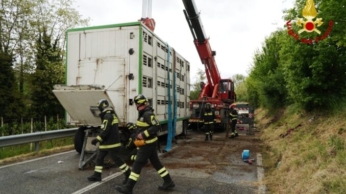 I Vigili del Fuoco di Avellino oggi 20 aprile, sono stati impegnati in due interventi riguardanti altrettanti incidenti stradale. Il primo si è verificato subito dopo le ore 12’00 nel territorio del comune di Venticano, sulla SS 7 via Appia, al Km. 281,400, dove un autotreno che trasportava una cinquantina di maiali, in un curva ha visto il semirimorchio ribaltarsi. Lunghe e delicate le operazioni, prima di recupero dei suini che sono stati trasferiti su di un altro camion, e poi del pesante automezzo, che ha visto l’utilizzo dell’autogru inviata sul posto dalla sede centrale di Avellino, e che sono durate circa quattro ore. Il conducente del mezzo proveniente da Roma e diretto nel Salernitano, non ha subito conseguenze oltre un comprensibile spavento, e i Carabinieri del Nucleo Radiomobile di Mirabella Eclano hanno effettuato i rilievi dell’incidente.