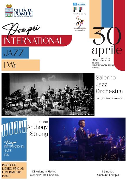 Con il british style del pianista, compositore e cantante Anthony Strong e con la verve tutta mediterranea della Salerno Jazz Orchestra diretta dal Maestro Stefano Giuliano, Pompei celebra anche quest’anno l’International Jazz Day.