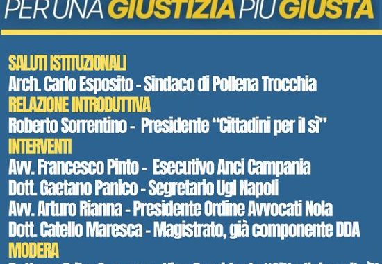 Spiegare le motivazioni per cui votare sì al referendum costituzionale del 22 e 23 marzo prossimi e, attraverso questa scelta, rendere la giustizia più giusta. È questo l’obiettivo del convegno organizzato lunedì 9 marzo nell’Aula Consiliare “Falcone e Borsellino” del comune di Pollena Trocchia. Promosso dal gruppo territoriale del “Comitato Cittadini per il SÌ” e da Ugl Napoli, l’incontro si aprirà con i saluti istituzionali di Carlo Esposito, sindaco di Pollena Trocchia, e con la relazione introduttiva del presidente del locale “Comitato Cittadini per il SÌ”, Roberto Sorrentino. A seguire il dibattito moderato da Erika Capuano, vicepresidente del comitato, prevede gli interventi di Francesco Pinto, avvocato e componente dell’esecutivo Anci Campania, di Gaetano Panico, segretario UGL Napoli, di Arturo Rianna, avvocato presidente dell’Ordine degli avvocati di Nola, e del magistrato Catello Maresca, già componente della DDA di Napoli. «Con questo primo importante appuntamento pubblico vogliamo contribuire a una riflessione seria e approfondita sul tema della giustizia e sulla necessità di confermare questa riforma che persegue il rafforzamento dei principi del giusto processo, della terzietà del giudice e dell’equilibrio tra accusa e difesa. È bene ribadire che la riforma della giustizia riguarda tutti noi da vicino, non è una questione tecnica riservata agli addetti ai lavori, né un tema che deve e può obbedire a logiche di parte. È una scelta che incide sull’equilibrio dei poteri, sulle garanzie per i cittadini e sul funzionamento dello Stato di diritto» hanno commentato dal Comitato, invitando l’intera cittadinanza alla partecipazione.