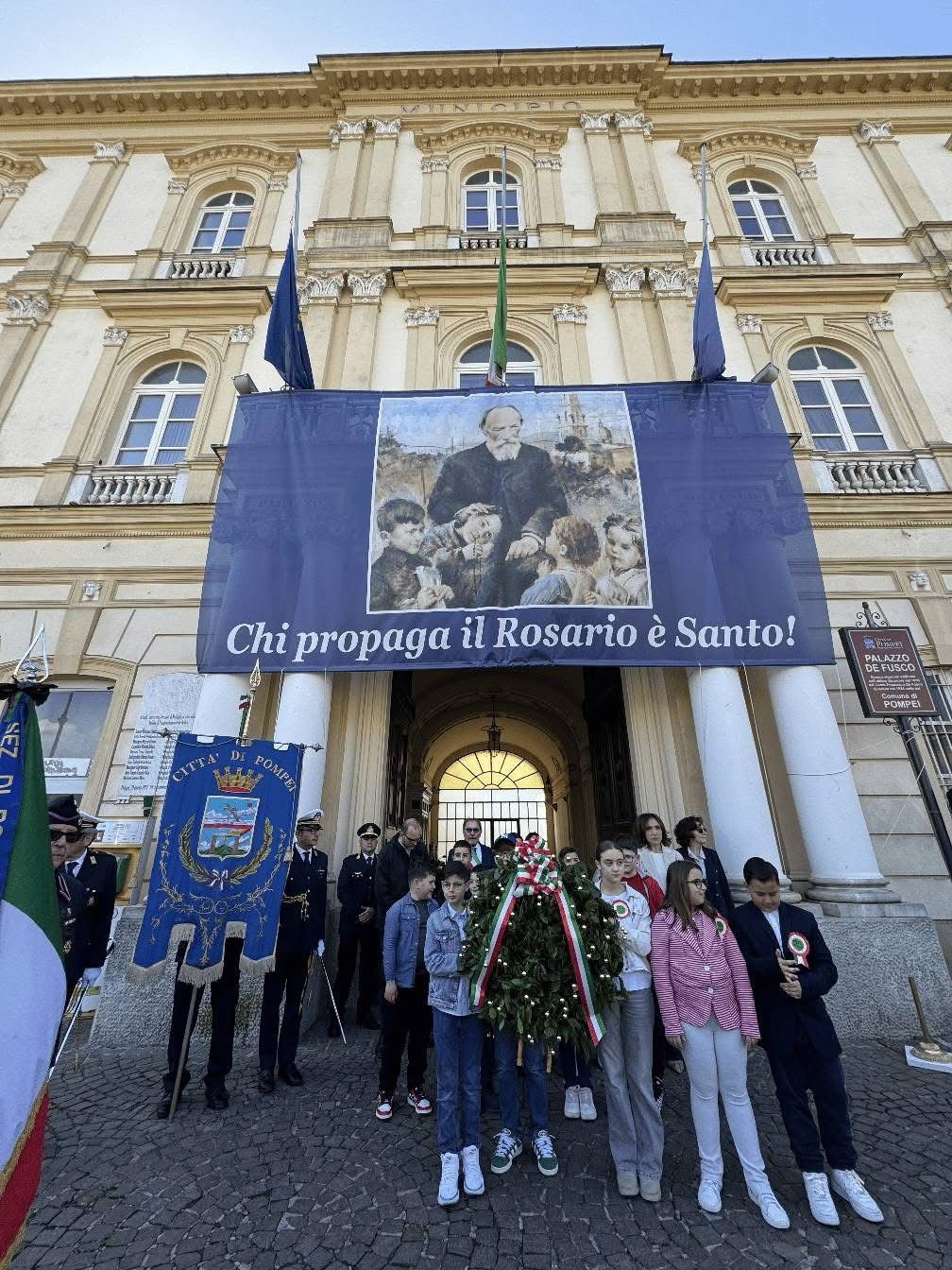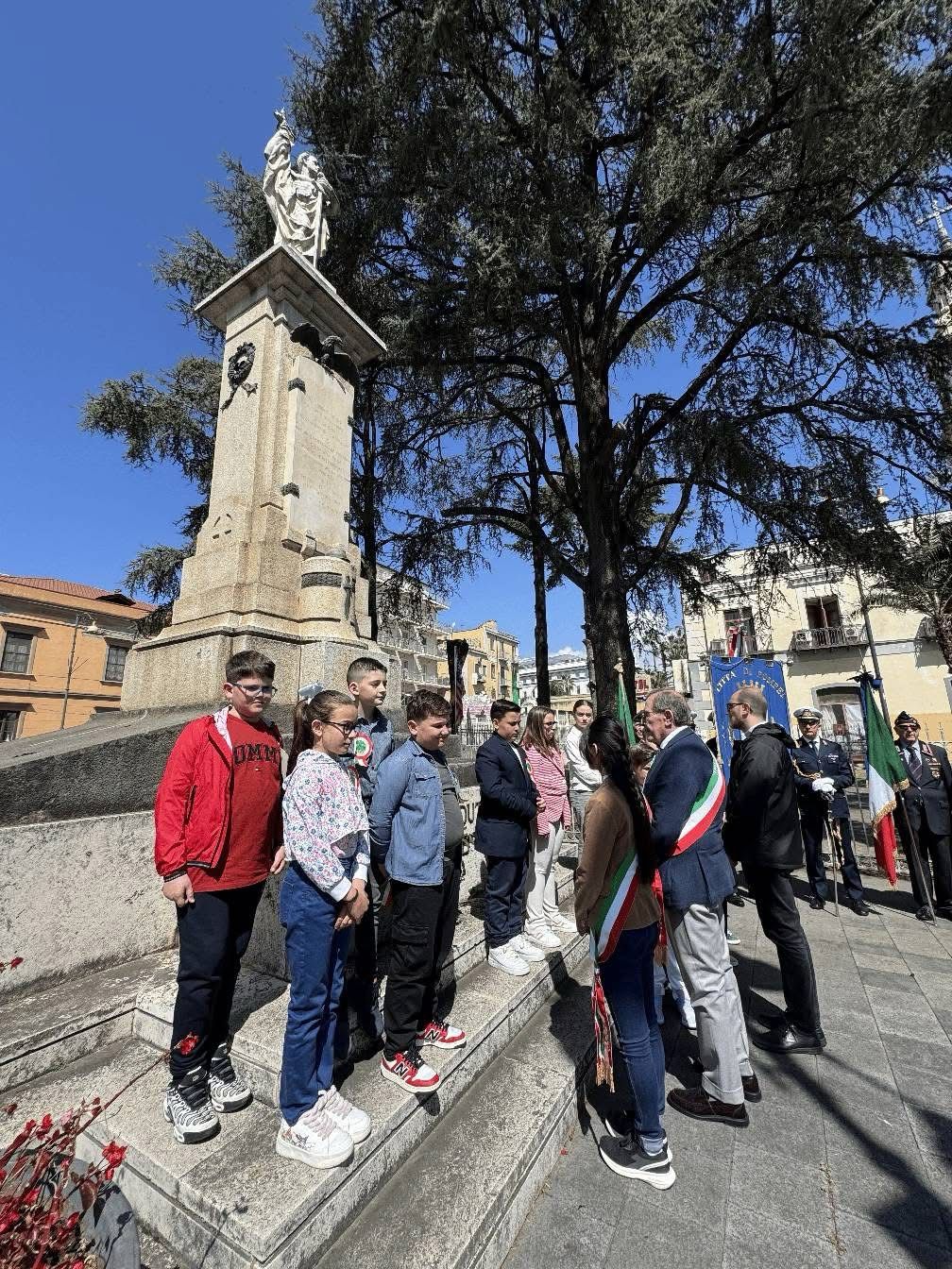 Alle ore 11.45, in piazza, i saluti istituzionali hanno completato la cerimonia. A prendere la parola è stato il Sindaco di Pompei, Carmine Lo Sapio, che ha sottolineato l’importanza di tramandare la memoria storica alle nuove generazioni, soprattutto in un tempo in cui i valori di libertà, democrazia e giustizia vanno custoditi e difesi con rinnovato impegno. Accanto a lui, il Garante Regionale dell’Infanzia e dell’Adolescenza, Dottor Giovanni Galano, ha posto l’accento sul ruolo educativo della memoria, richiamando il dovere collettivo di formare cittadini consapevoli attraverso la cultura della non violenza e del rispetto dei diritti.
