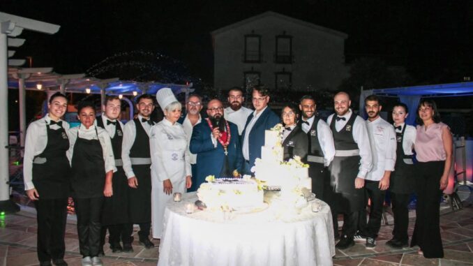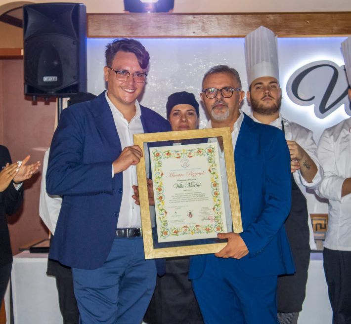 Una autentica parata di stelle. Ma questa volta Michele Cutro, uno dei maggiori e noti critici italiani del settore enogastronomico, critico al Festival di Sanremo, cerimoniere dell’Ordine cavallereschi d’Italia, ha stupito davvero tutti con la “notte delle stelle” a Villa Marini premiando le autentiche eccellenze enogastronomiche dell’area vesuviana in uno scenario hollywoodiano ricostruito intorno alla piscina e agli ambienti interni di Villa Marini a San Giuseppe Vesuviano. 22 i riconoscimenti assegnati con diverse motivazioni dalla Federazione Cooking Show, di cui Michele Cutro é direttore. Due i riconoscimenti assegnati a Villa Marini, con i proprietari Umberto Romano e Giuseppe Raia, Dora boccia direttore di Sala e Alfonso Cervone Schef di villa Marini maestro di cucina: maestro di cucina marinara e maestro pizzaiolo. Alla pasticceria di Antonietta Cornacchione il riconoscimento di maestro di pasticceria mentre a Macrì Dessert quello del semifreddo. Il titolo di maestri casari alla Latteria Sorrentina e Caseificio San Michele, al pastificio artigianale Russo quello di maestri pastai mentre a Vincenzo Capuano è andato il riconoscimento di maestro pizzaiolo. La stella della ristorazione é stata assegnata a Recchi Fisch Restaurant di Claudio Recchi. Quello per la surgelazione é stato assegnato a Fish’s King, mentre quello di vignaiolo e cantiniere a Romano Fioravante vini. Il titolo di maestro della distribuzione all’ingrosso di wine, beverage food e non food é stato assegnato all’azienda G.M.C. Poi una serie di riconoscimenti per meriti speciali assegnati alla pizzeria doppio zero Angelo Carbotti; Fabio Fiorenza,pizzeria Made in Sud; allo stilista Paolo Iovino; a Luvinamė di Vincenzo Ambrosio; al Barbershop Lo Sceicco; a S.G. allestimenti; agenzia spettacoli E.F. Show; al fiorista Gaetano Ambrosio; a Il Frutteto e Molino Magri dal 1929. La serata, condotta dallo stesso Michele Cutro, è stata allietata dalla splendida voce di Alessandra De Santis e dai virtuosismi del sax di Luigi Del Prete mentre quattro splendide modelle hanno sfilato con abiti della collezione cerimonia sposa dello stilista Paolo Iovino. Il taglio della torta tra colorati fuochi d’artificio ha chiuso la “notte delle stelle”.