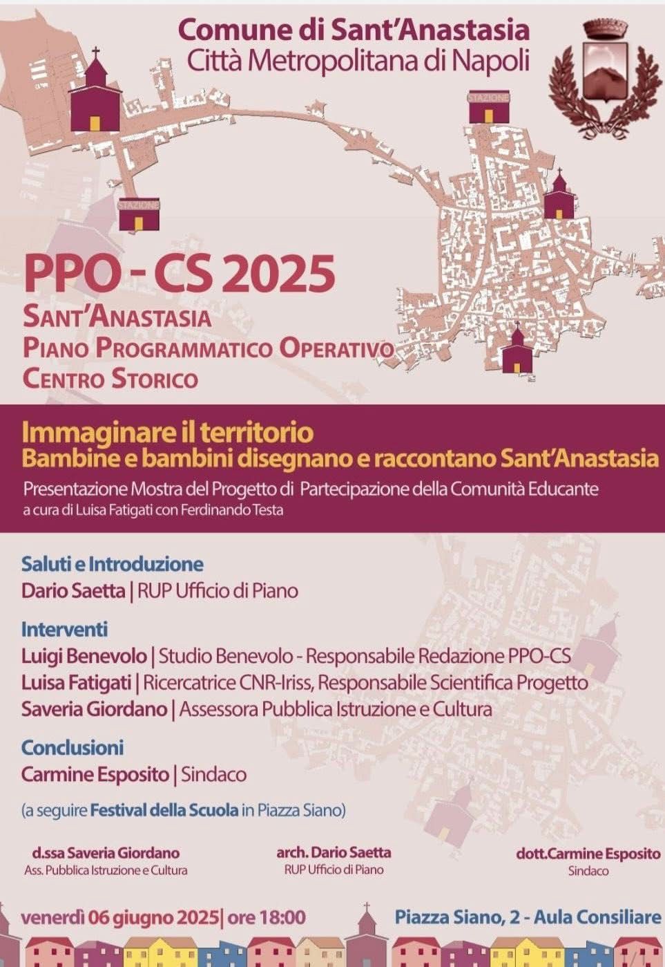 La serata proseguirà con un momento di confronto pubblico dedicato al Piano Programmatico Operativo del Centro Storico. A illustrare le linee guida e gli obiettivi saranno l’architetto Dario Saetta, Luigi Benevolo – responsabile della redazione del PPO-CS2025 – e Luisa Fatigati, ricercatrice CNR-IRISS e responsabile scientifica del progetto. Con loro, l’assessora all’Istruzione e alla Cultura Veria Giordano, promotrice di un dialogo tra scuola, territorio e progettazione urbana.