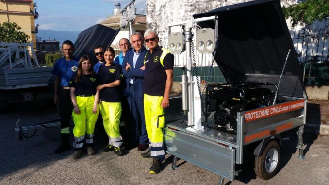 SOMMA VESUVIANA. Consegnati alla Protezione civile mezzi per 13mila euro finanziati dalla Città MetropolitanaSOMMA VESUVIANA. Il Comune ha consegnato ai gruppi di protezione civile attrezzature tecniche acquistate con i fondi messi a disposizione della Città Metropolitana di Napoli. In particolare, per potenziare quelle già in dotazione, sono stati acquistati: 2 carrelli mobili con torri fari led telescopiche, gruppi elettrogeni da 6kw e una motosega in dotazione accessoria che porteranno la luce in caso di necessità anche nei luoghi più impervi. Sono stati acquistati inoltre 3 sistemi di rilevazione satellitare Garmin di ultima generazione con collegamento alla rete cellulare per la geocalizzazione che permetteranno agli operatori di individuare correttamente la posizione in cui intervenire. Le attrezzature sono state affidate dal sindaco Salvatore Di Sarno alle locali associazioni di protezione civile “Cobra2” e “Gruppo volontari di Pronto Intervento”. Il Comune aveva partecipato nei mesi scorsi al bando indetto dalla Città Metropolitana ottenendo il finanziamento di 13mila euro. “Per noi la salvaguardia dell’incolumità dei cittadini viene prima di tutto”, commenta il sindaco Salvatore Di Sarno, “ed infatti in materia di protezione civile nei mesi scorsi abbiamo approvato in consiglio comunale il nuovo regolamento e stiamo procedendo all’aggiornamento del piano di emergenza comunale, approvato nel 2015. Progettazione che però senza l’impegno costante dei nostri volontari sarebbe inutile, per questo ringrazio sempre gli operatori di protezione civile “Cobra 2”, “Corpo volontari di Pronto Intervento”,  Aisa e Croce Rossa Italiana per il loro lavoro a servizio della collettività”.
