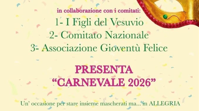TERZIGNO – La città si prepara a vivere uno degli appuntamenti più attesi dell’anno. Domenica 22 febbraio 2026 andrà in scena la sfilata dei carri allegorici del Carnevale Terzignese, manifestazione promossa dall’Associazione Carnevale Terzignese con il patrocinio del Comune.