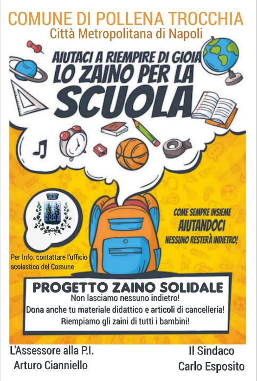 Uno zaino solidale per essere vicini a chi ha meno e dar la possibilità a tutti gli alunni di poter contare su materiale scolastico all’altezza. È questa la nuova iniziativa promossa dall’Assessorato alla Pubblica Istruzione, che in concomitanza con l’avvio del nuovo anno scolastico sul territorio ha voluto essere vicino all’intera platea scolastica. «La ripresa della scuola, a settembre, è sempre un momento di grande emozione ma, al tempo stesso, anche di spese consistenti necessarie per dotare gli alunni di tutto il necessario per la frequenza scolastica, tra libri, quaderni, materiale vario di cancelleria, il che può talvolta rappresentare un problema, soprattutto per le famiglie numerose e meno abbienti. Di qui l’idea della prima edizione dello zaino solidale, che mette insieme diritto allo studio e solidarietà» ha spiegato l’assessore alla Pubblica Istruzione del Comune di Pollena Trocchia, Arturo Cianniello, che in mattinata ha effettuato un giro dei plessi scolastici cittadini dell’I.C. Donizetti per consegnare materiale pubblicitario dell’iniziativa, trovando un’accoglienza favorevole ed entusiasta nei confronti della stessa. Il meccanismo dello zaino solidale è semplice: nella casa comunale e presso la segreteria dell’Istituto comprensivo dell’I.C. Gaetano Donizetti sono state posizionate delle ceste che potranno essere riempite da chi vorrà con materiale d’uso per gli alunni delle scuole. «Ringraziamo la dirigenza del Donizetti per il favore con cui ha accolto questa iniziativa. Attraverso la collaborazione della scuola e delle parrocchie del territorio, con le quali l’Ufficio Scolastico si interfaccerà per la distribuzione del materiale raccolto, che avverrà in maniera anonima, siamo sicuri che avremo successo» ha detto il consigliere comunale Marilena De Simone, presidente della commissione Pubblica Istruzione. «Questa Amministrazione Comunale ha lavorato affinché l’inizio dell’anno scolastico fosse ordinato e corredato fin da subito dall’attivazione di servizi fondamentali. In nessun caso, infatti, gli sforzi che stiamo producendo per il profondo rinnovamento delle scuole del territorio deve essere alternativo alla buona ordinaria amministrazione delle stesse. La collaborazione con le scuole sarà costante e arricchita da iniziative come quella dello zaino solidale, volte a dimostrare interesse e vicinanza agli alunni del territorio, nessuno escluso» ha concluso Carlo Esposito, sindaco di Pollena Trocchia.