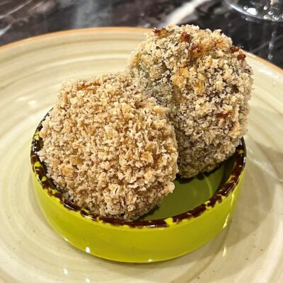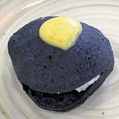 Per i fritti, a cura di Giovanna Di Palma, addetta alle fritture del locale, spiccano le polpettine miste (all’ortolana e alle melanzane) accompagnate – per i vini – da un calice di Getis Rosato Costa d’Amalfi, un rosato del 2020, maturo e strutturato, e per le birre dalla English Ale Monaci Vesuviani. E la “Bomba di Osimhen”, una piccola e gustosissima rivelazione, è un gioiellino aggiornato sull’attualità calcistica: un panino al nero di seppia con ricotta aromatizzata al limone e crema di datterini gialli, sempre abbinata al Getis Rosato per i vini, e alla English Ale per le birre.
