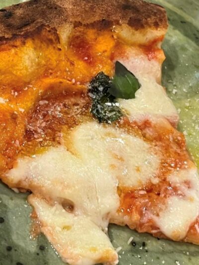 Il segreto è l’attenzione ai prodotti di qualità del territorio e gli impasti di pizza contemporanea che Raffaele Esposito ama sperimentare, come l’impasto al nero di seppia per la pizza “Mare Fuori”, ispirata alla celebre serie tv, con crema di piselli, fiordilatte, crema di prezzemolo aromatizzata al limone e seppioline saltate in padella con paprika. Freschezza e aromaticità sono esaltate nell’abbinamento con il Caprettone delle Cantine Olivella, un bianco dai sentori floreali, fruttati e freschi. Gli amanti della birra, potranno deliziarsi con una English Ale Monaci Vesuviani.