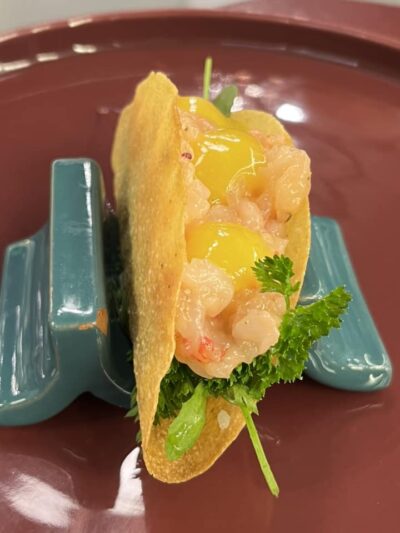 Gli entree, frittatina di pasta alla cacio e pepe, tacos farcito con misticanza, gamberi rossi e gel agli agrumi, bun pulled dalla doppia cottura, prima al vapore e poi fritto e con topping di pulled pork, sono stati abbinati a Tenuta Camaldoli Campi Flegrei Piedirosso – per i rossi – o, in alternativa, da Astro Campi Flegrei Falanghina spumante brut di Cantine Astroni, per i bianchi. Per le birre, Koning Ludwing Schloss- Keller Naturtrub e la Oberbrau doppio malto rossa.