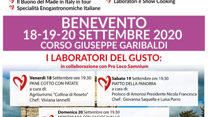 All’interno del villaggio di “Gusta Italia in tour” sarà possibile vivere i seguitissimi “Laboratori del gusto”, appuntamenti gratuiti con chef, pasticceri, produttori ed esperti del settore. In questa tappa sono organizzati in collaborazione con la Pro Loco Samnium.